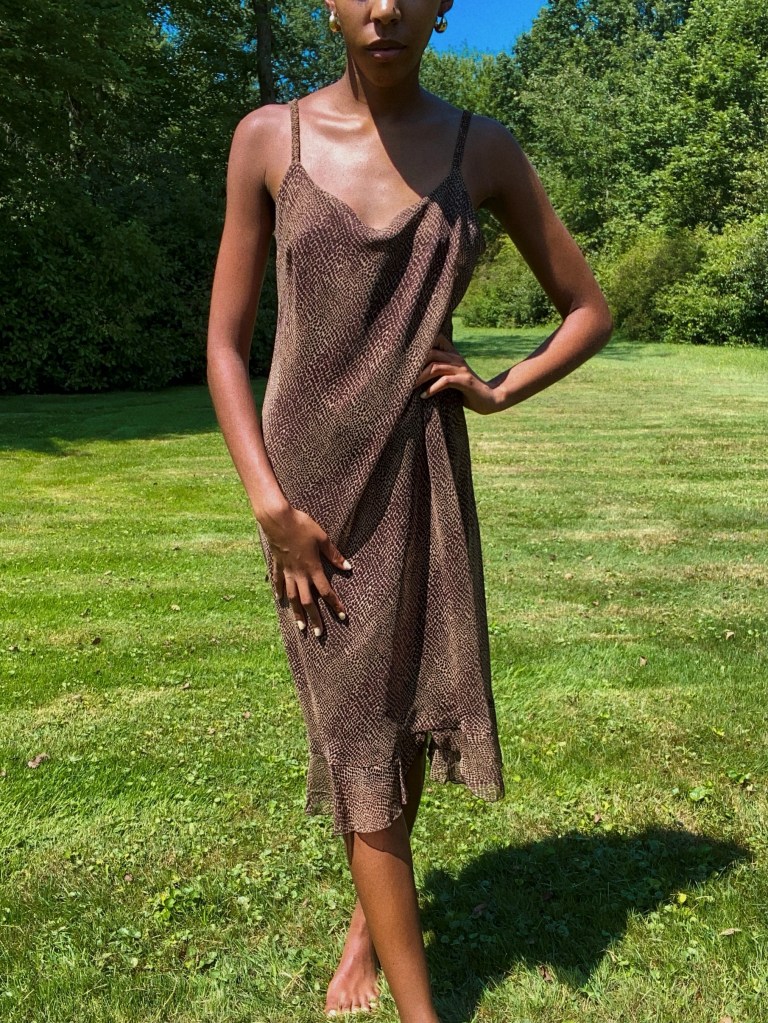A slip dress quite literally is the best solution to dressing light-weight in hot weather. The small print on this dress also is a perfect fit for my body type.