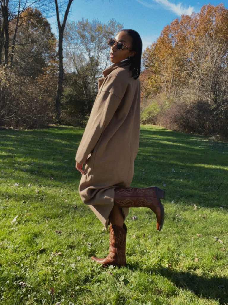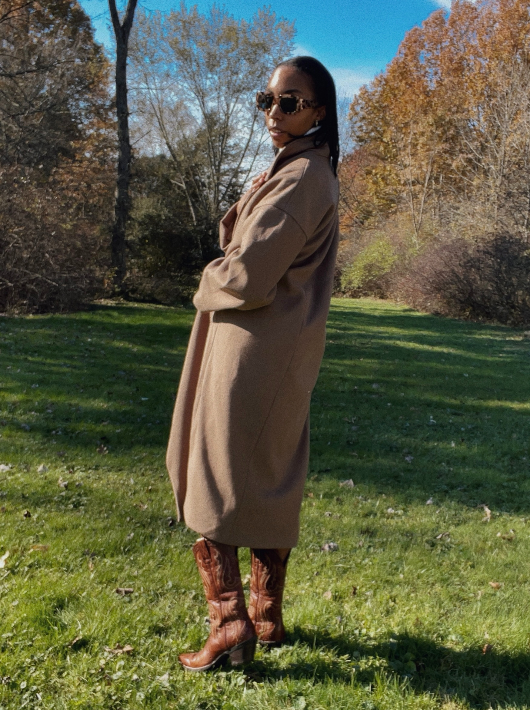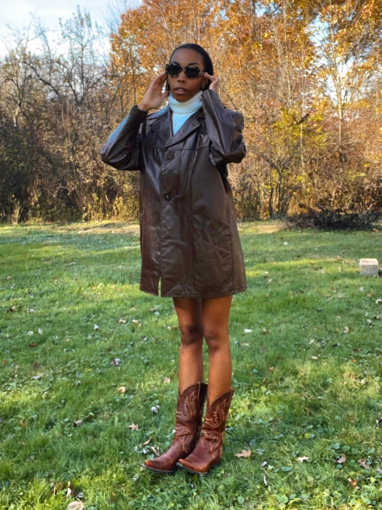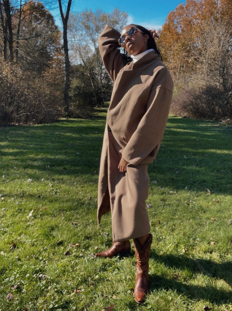 After I got the boots, I thrifted two coats to wear with them. See more of my two looks styled below