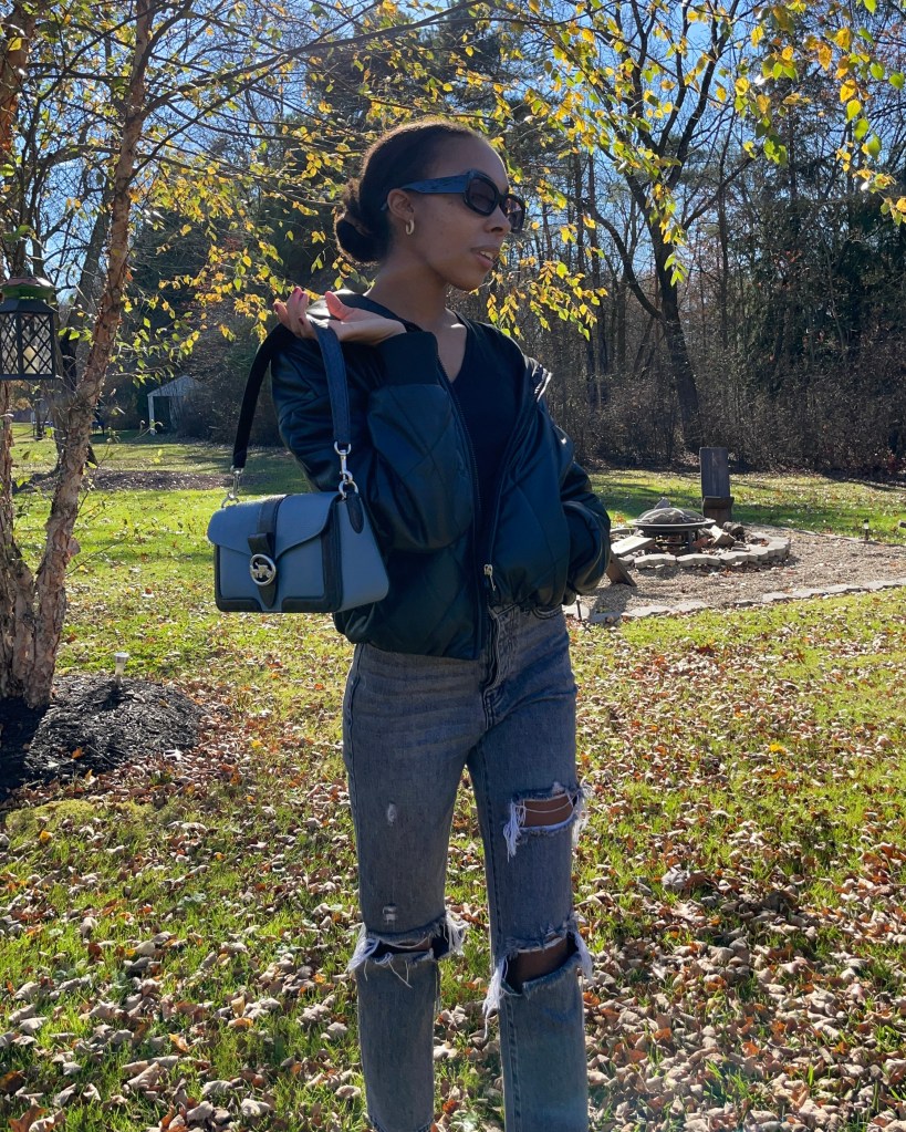 At the time, I was trying out easy outfits I could wear with my blue Coach bag after I first got it. Find more details on what I decided to wear below.