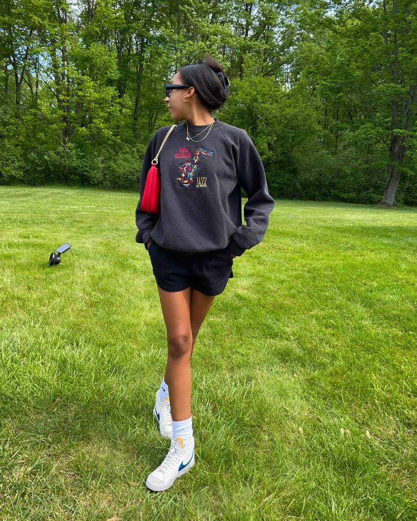 This week, I have another comfy outfit inspo post. This is my favorite way to wear sweat shorts during this time of year. Another great example using this outfit combination is with my realistic OOTD.