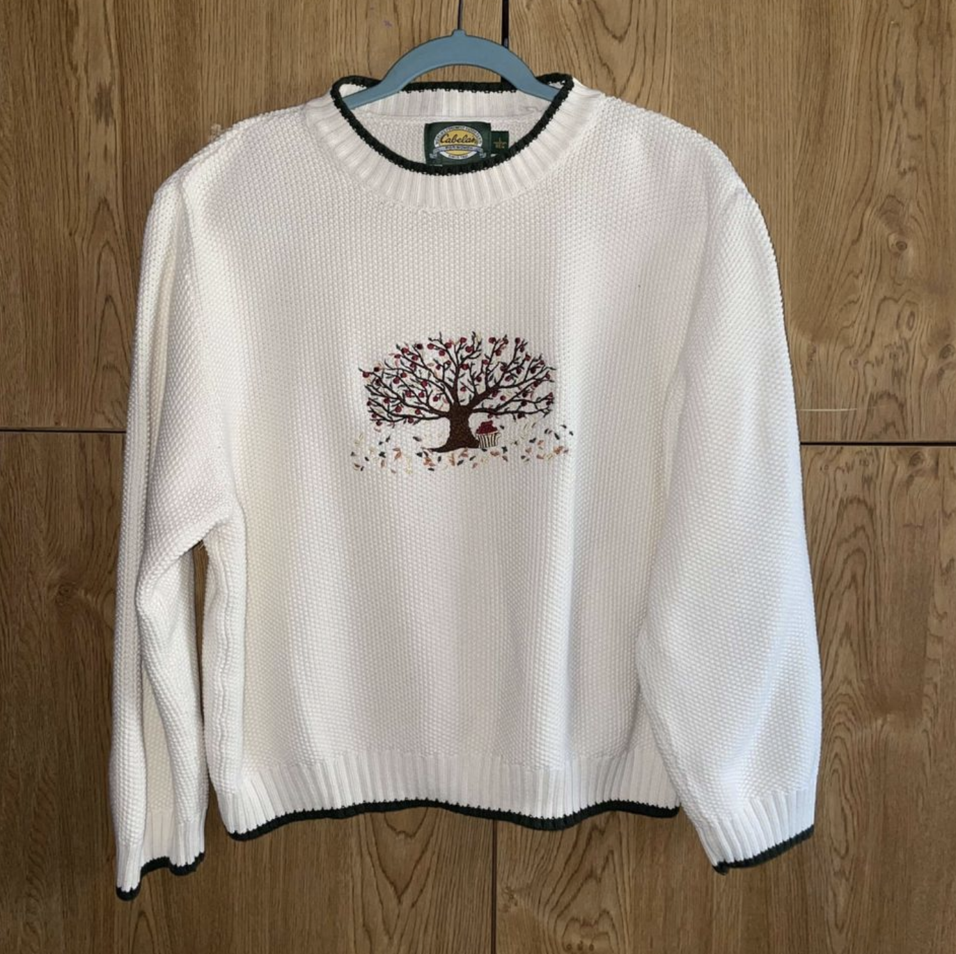 Here it would be great to layer a vintage sweater over the dress and pull out the collar. Now you have somewhat of a brown argyle skirt. The brown sweater embroidery is accented with the brown skirt/dress, and even the small red leaf embroidery can be accented with an accessory like this red bag.