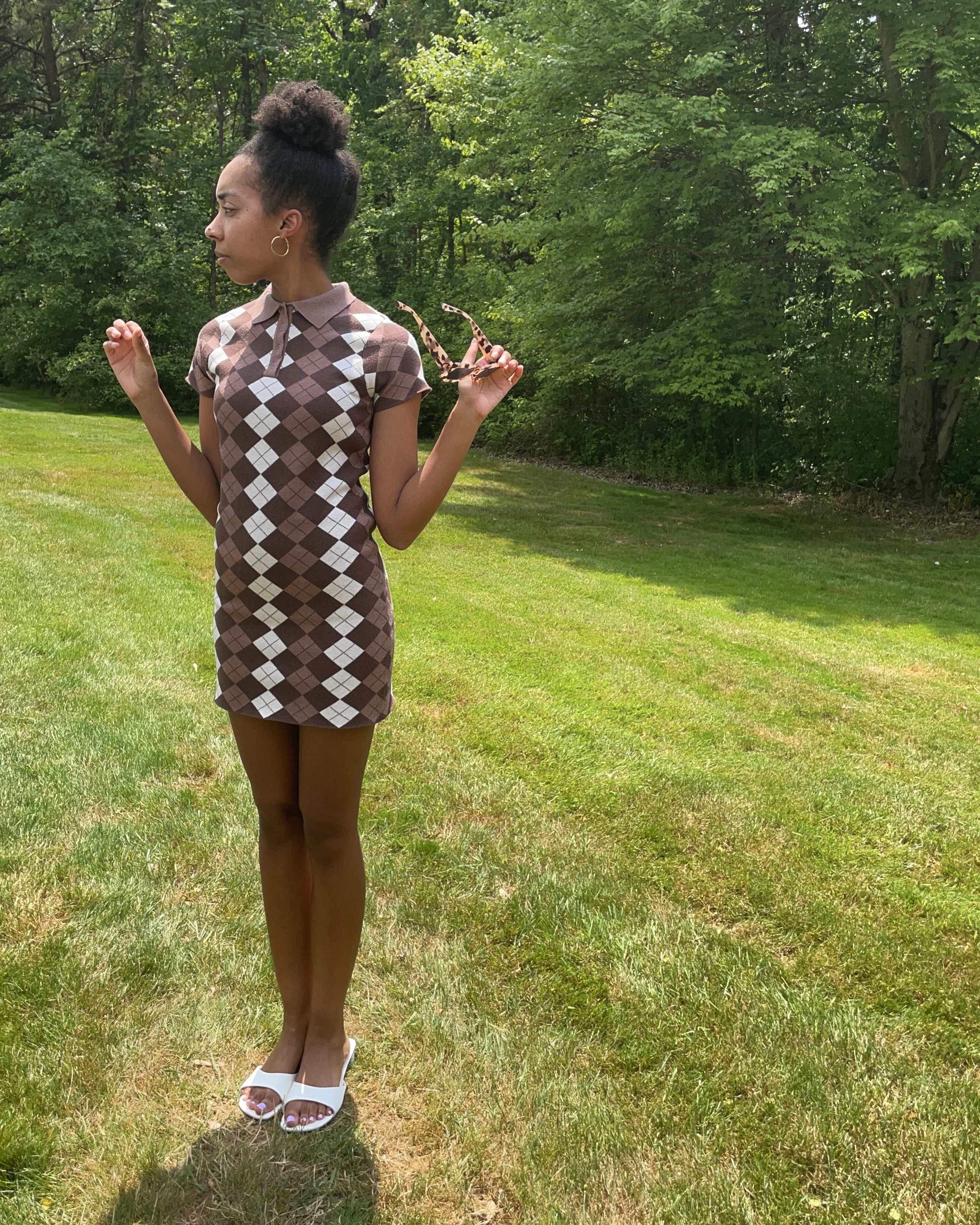 This week, I’m styling my argyle printed dress four different ways. It has been sitting untouched in my closet for awhile, so I thought it would be fun to put together some new ideas on how to wear it.