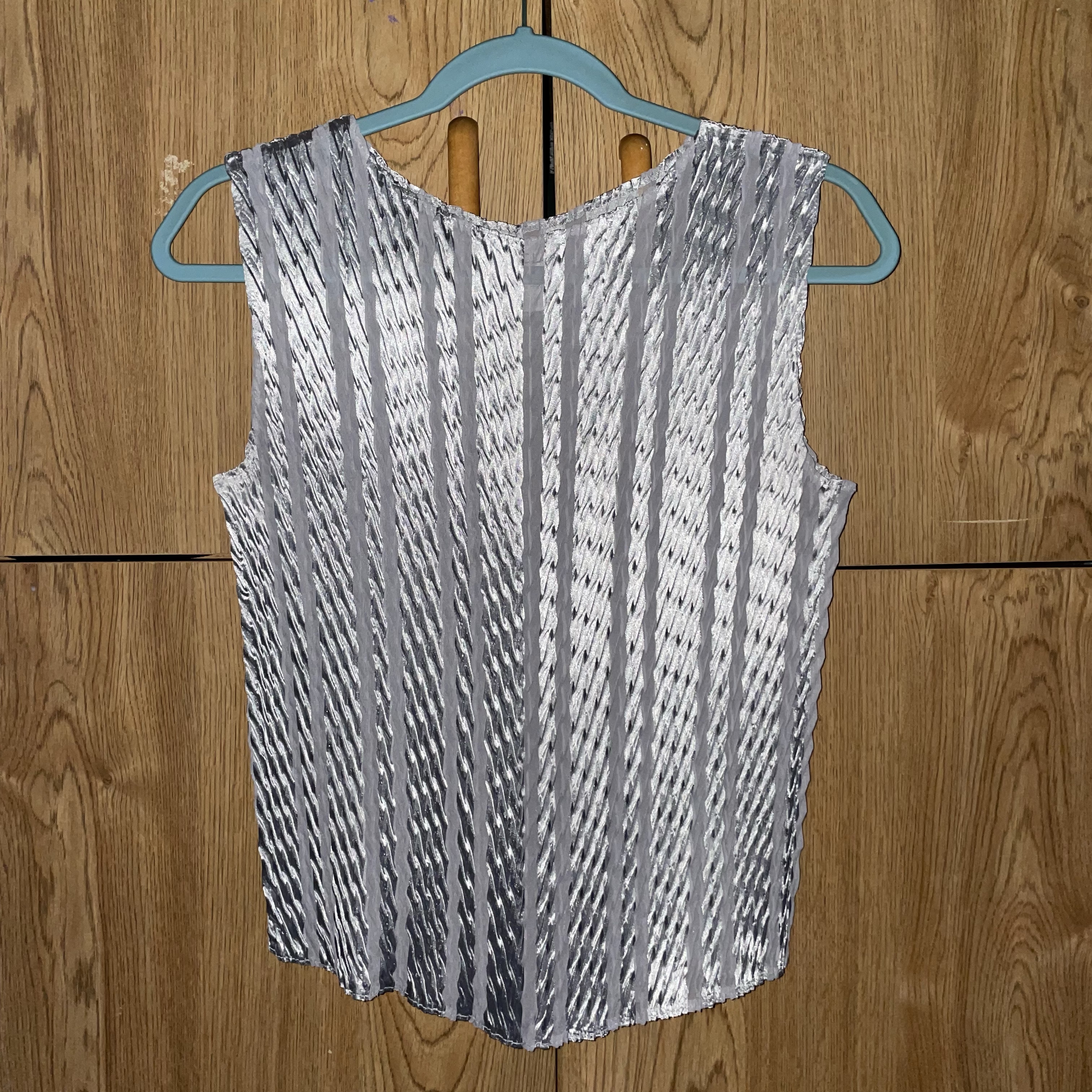 You could put together an easy outfit like this with a white tank top, although something like this textured silver satin tank adds more of a fun personal touch. Not to mention, it’s a great top to wear with a bag that has metallic/silver hardware.