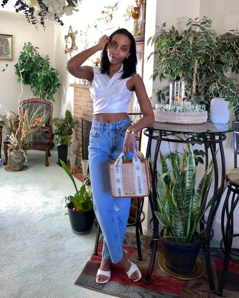 A tip for a super simple outfit: try wearing the top in a different way if applicable. In my example, instead of wearing this tie-able tank top in the front like expected, I tied it around the back to create a different look.