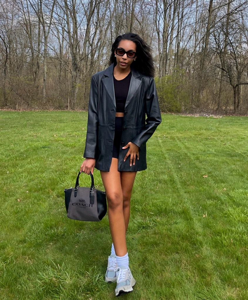 The goal of this post was to put together an activewear outfit. The starting point was my pair of black biker shorts.
