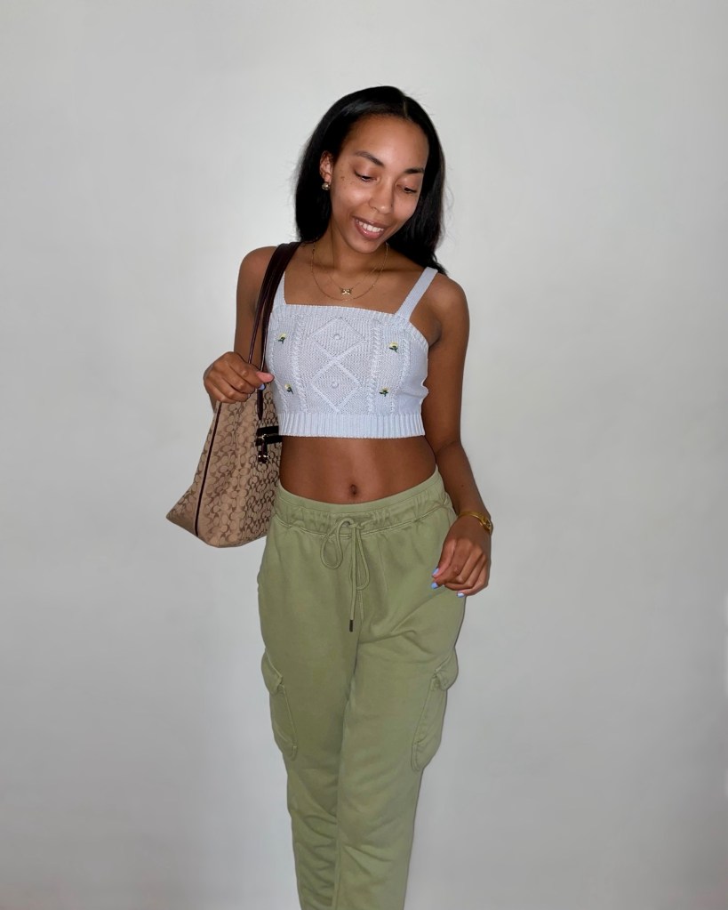 While digging through my drawers, I found an item that made me realize there is one way I can mix floral print into my style. The answer? Subtly knitted into a top.