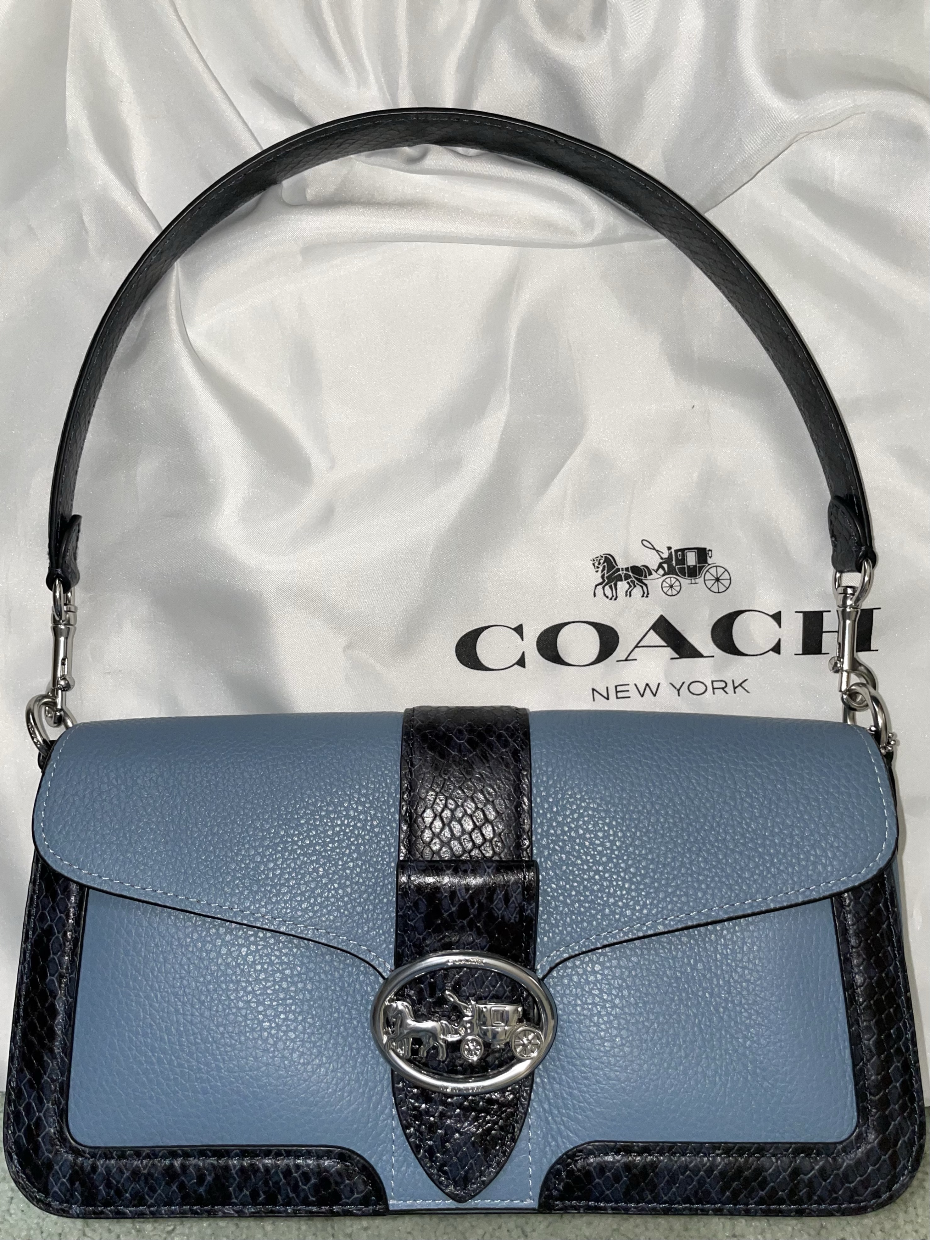 Bag used: Coach Georgie Shoulder Bag snakeskin embossed leather indigo blue multi shoulder bag