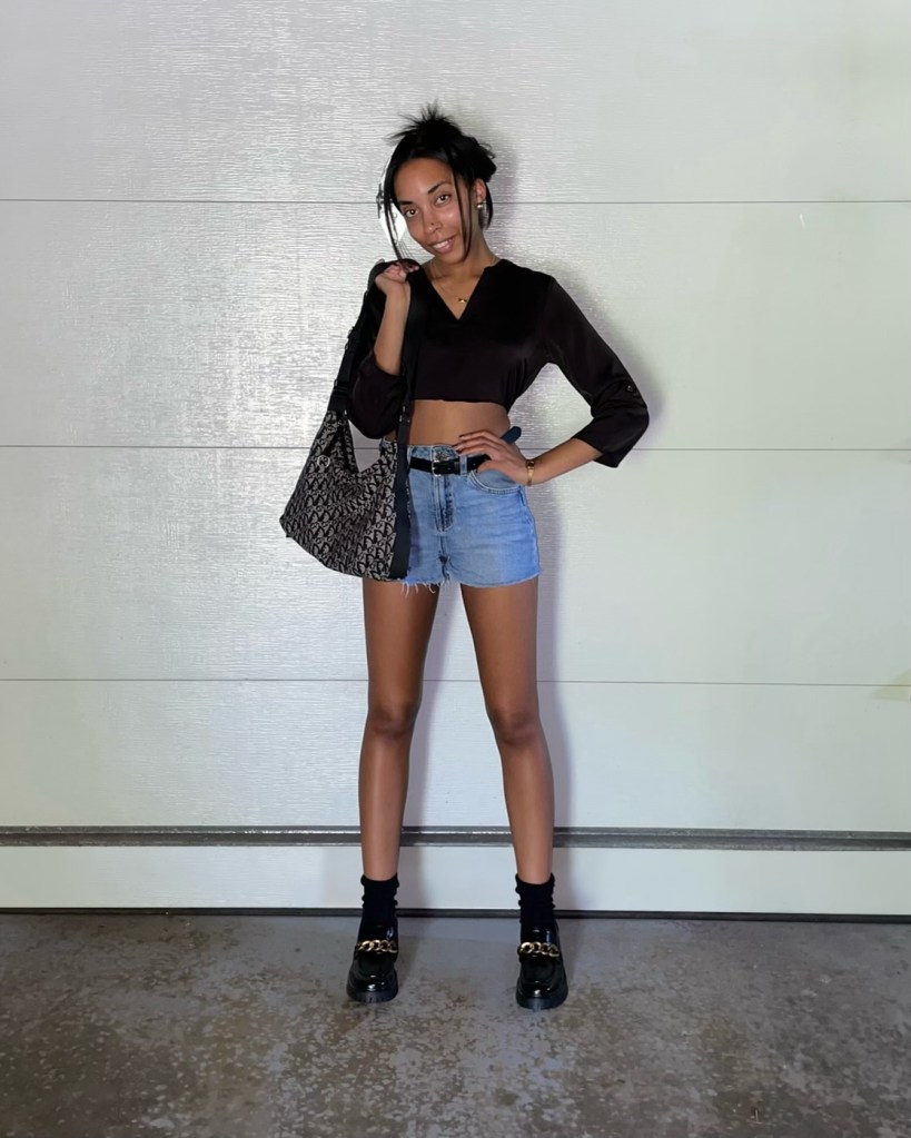 To do that, I decided to crop the dress to create a top. Then for styling, I tied the shirt around the back instead of the front.