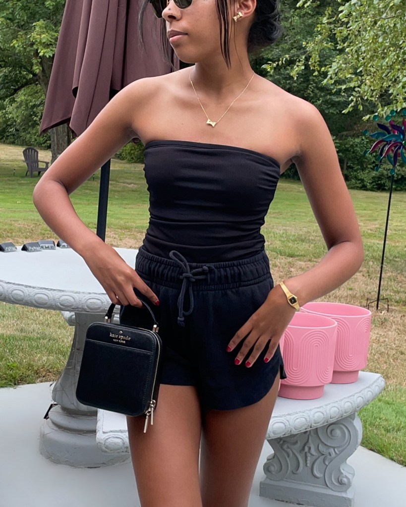 Today’s outfit styles the same base from 3 tips for a pool day outfit with a few added details to jazz it up.