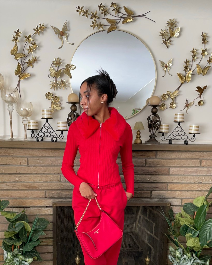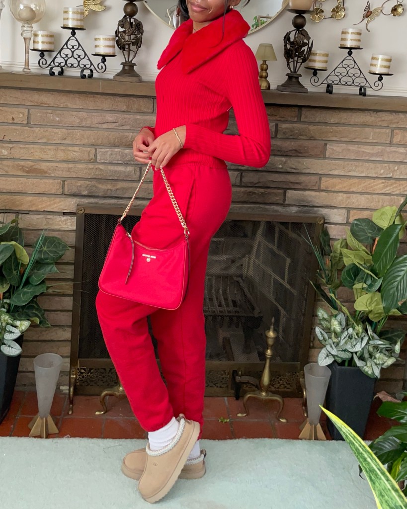 The first idea to come to mind was something comfy. Find what I put together for lazy Valentine’s Day outfit below.
