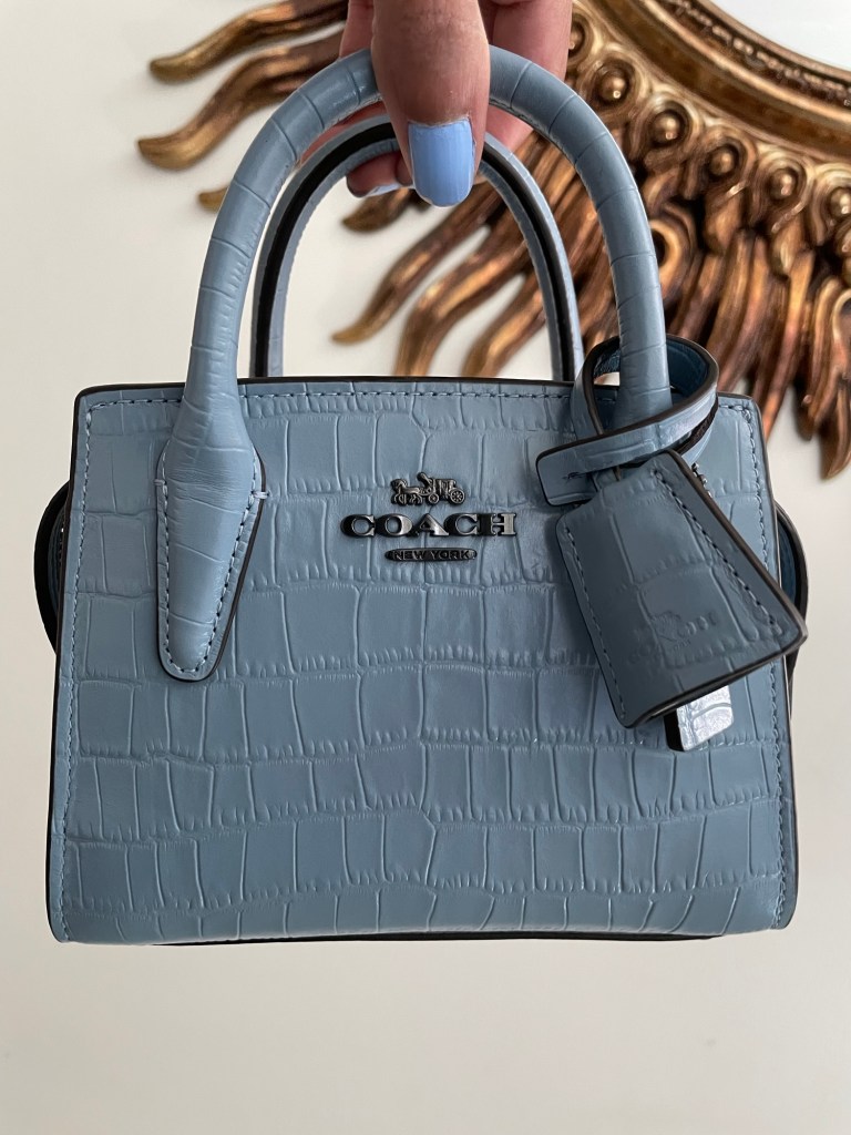 - Coach Andrea Mini Caryall in gunmetal/cornflower